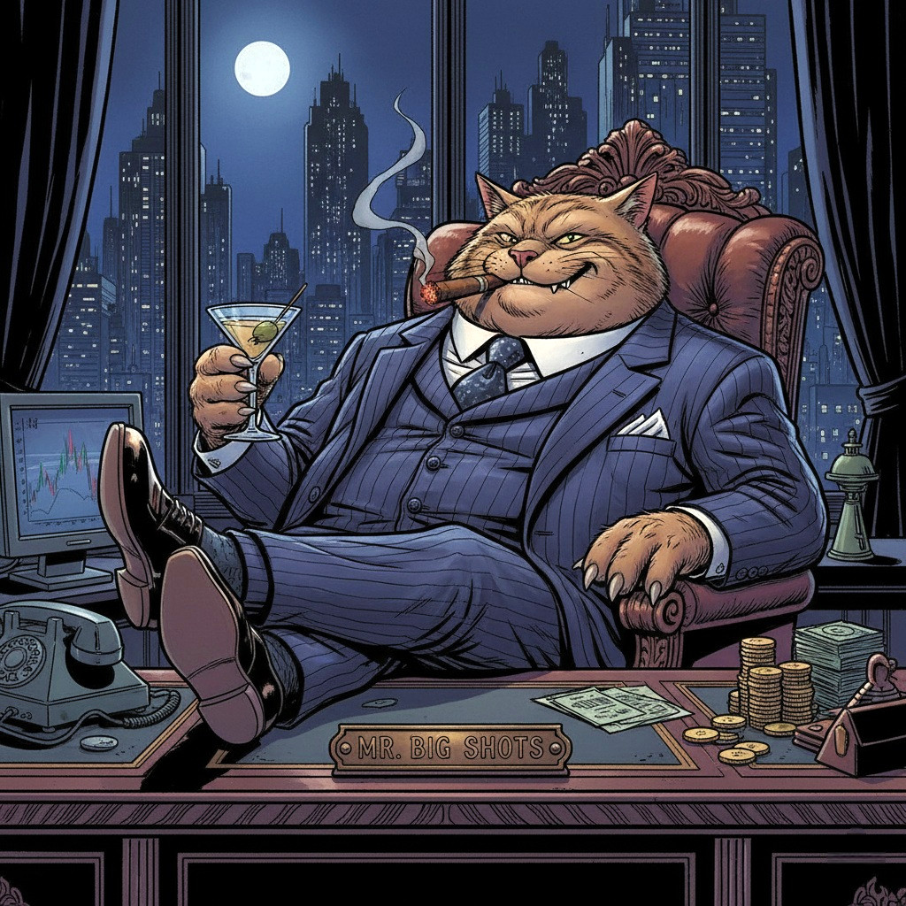 It’s Scratcher Tower, home of the international consortium that runs Big Yums, controlling the flow of every last morsel of kibble into this forsaken city. The Fat Cats on the top floor, they call the shots, control the mayor and have their paws in every pie. If it’s biz, the Fat Cats get their cut.